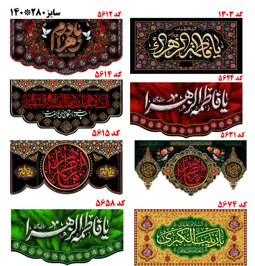 پرچم یا فاطمة الزهرا سلام الله علیها جنس مخمل با نوشته چاپی با کیفیت در سایزهای ۴۵در۹۰ سانت و۷۰در۱۴۰سانت و ۱٫۴۰در۳ متر ویژه شهادت حضرت زهرا سلام الله علیها